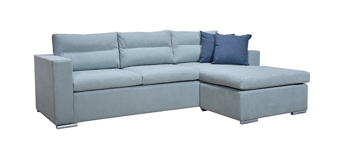 Γωνιακός καναπές, με δυνατότητα τοποθέτησης της γωνίας αριστερά ή δεξιά, εύκολα και γρήγορα, με μια απλή μετακίνηση του ταμπουρέ.