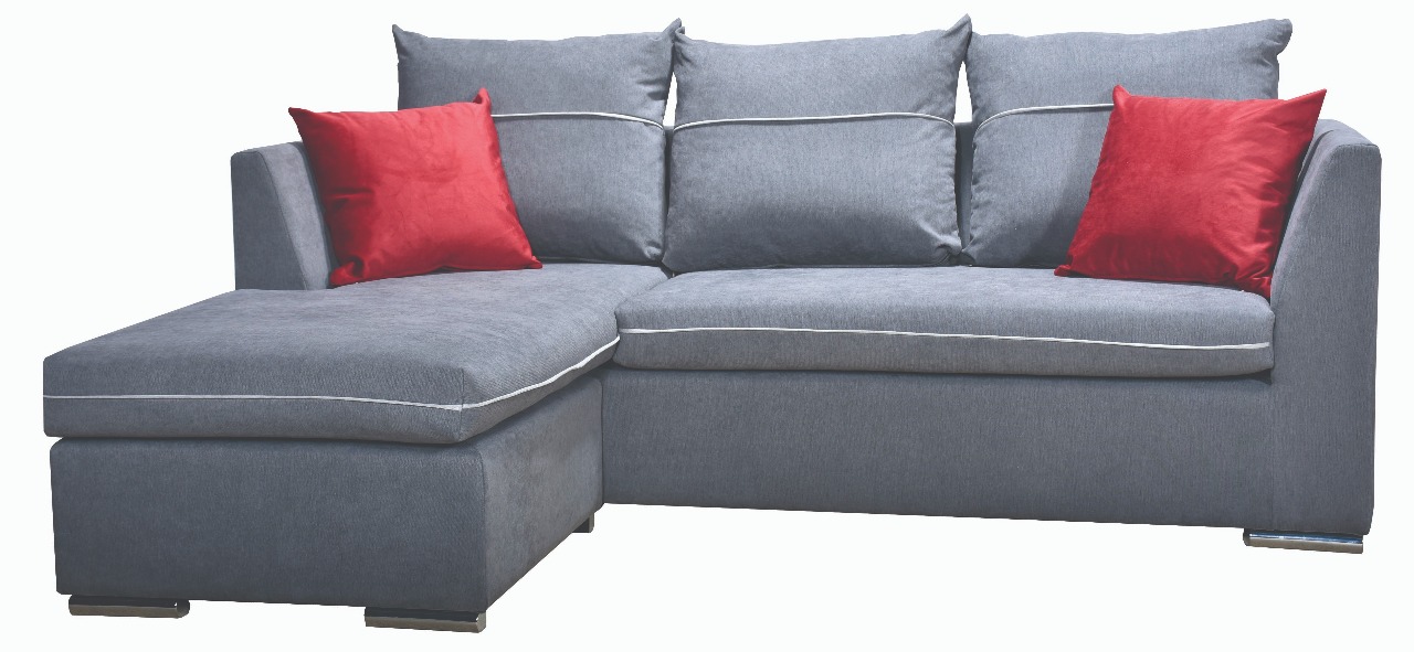 Γωνιακός καναπές με δυνατότητα τοποθέτησης της γωνίας αριστερά ή δεξιά, εύκολα και γρήγορα, με μια απλή μετακίνηση του ταμπουρέ.
