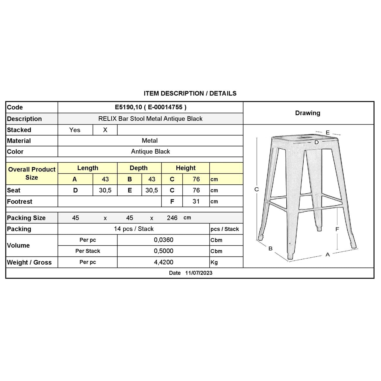 • Είδος: Σκαμπό Bar Στοιβαζόμενο