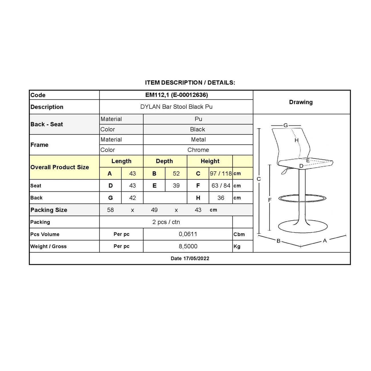 • Είδος: Σκαμπό Bar