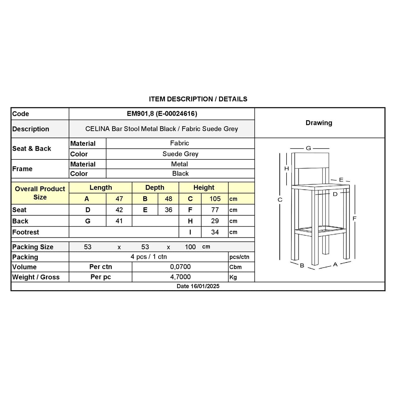 • Είδος: Σκαμπό Bar