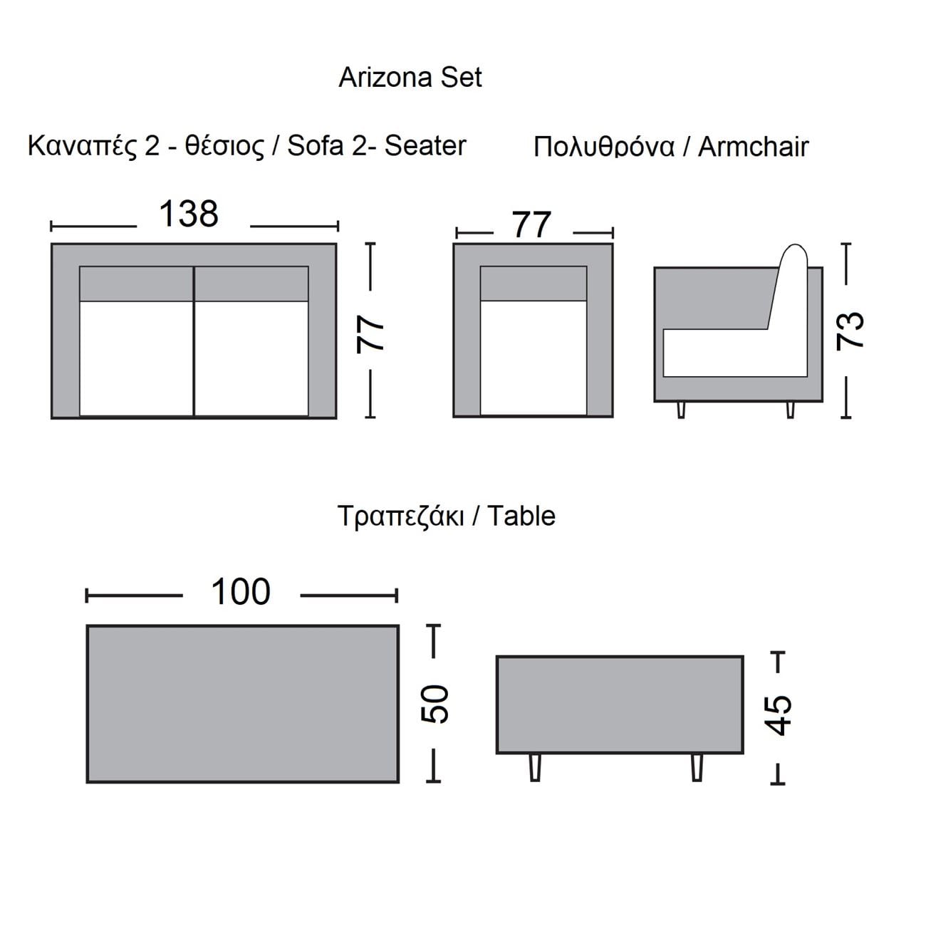 Ε6734,2 ARIZONA Καναπ.2θέσ.Alu/Wicker Grey Brown Μαξ.Aνθρακί